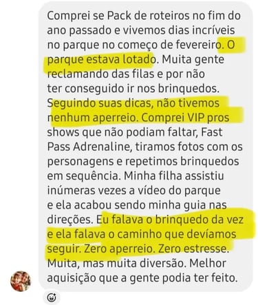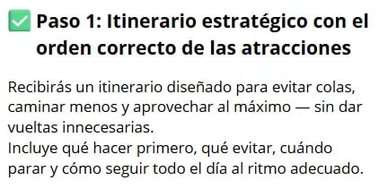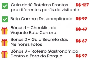 Você recebe 10 roteiros prontos, testados e aprovados, com a ordem ideal das atrações, horários e sugestões práticas.