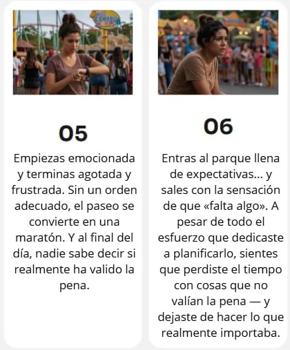 Ya no puedes soportar perder tiempo intentando crear un itinerario que tenga sentido – y además tienes miedo de equivocarte en el parque.