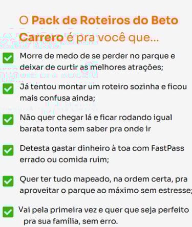 Foi por isso que eu decidi transformar toda essa experiência no Guia de Roteiros. Pra que você não precise aprender do jeito difícil — e consiga aproveitar o Beto Carrero de forma inteligente, segura e leve, mesmo que seja a sua primeira vez.